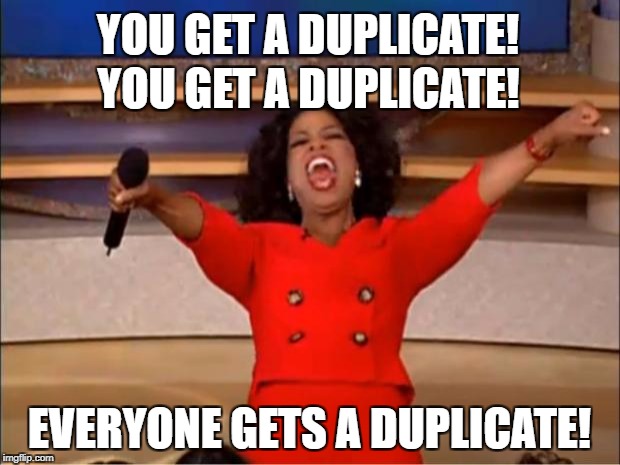TL;DR Software Engineers see world in patterns, they look for common denominators, not accepting the fact that something may be an one & only instance. That's why we sometimes end up building frameworks for single problem occurrences ("we'll gonna need it in future") or try to squish accidentally similar concepts into one, common form - ignoring the fact that Domain experts don't recognize this similarity (it has no advantage in terms of domain, it doesn't constrain real-world domain development). The proper answer is (of course) to fight off instinct of pre-mature generalization & ... duplicate.