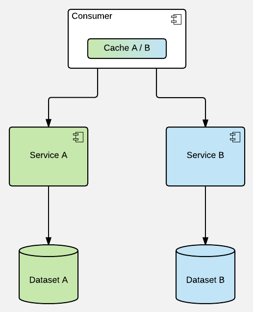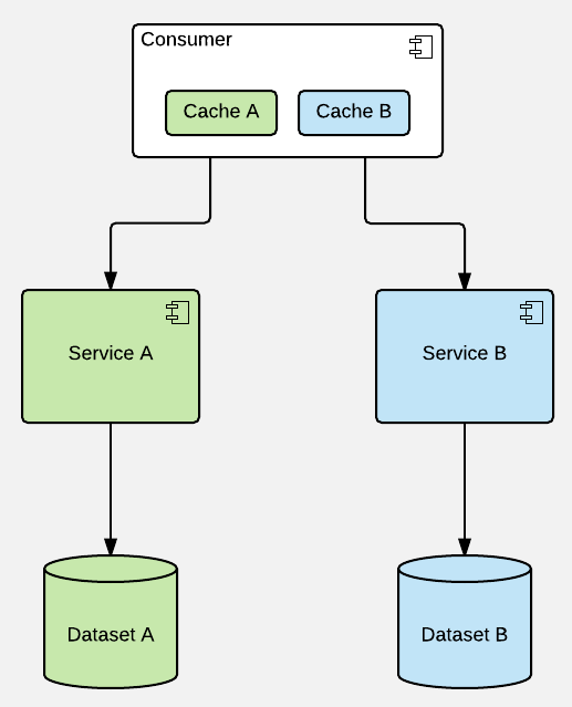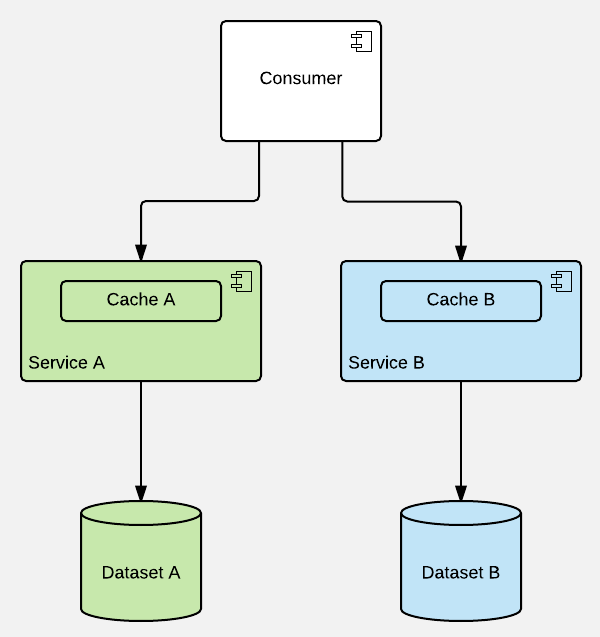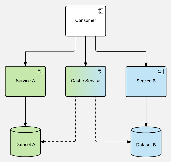 - access to particular piece of data / service should be uniform & singular (as one end-point) - cache should be hidden within (primary) service that acts as a single point of contact