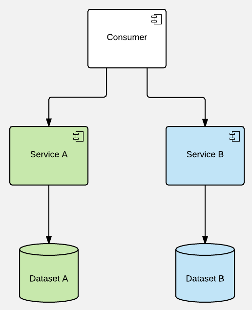 Key rules from above can be easily illustrated with the diagrams. Let's start with a simplified perspective of a sample system that doesn't provide caching: