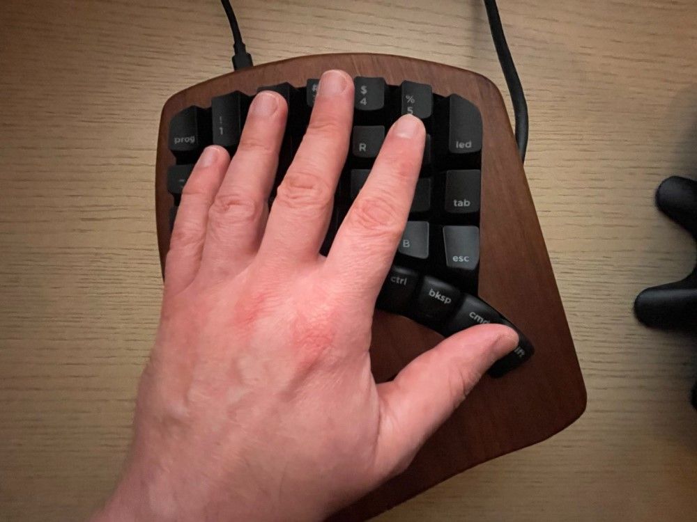 Additionally, it's the first keyboard I used where hands stick to their parts 100% of the time. In "normal" (single body) keyboards, some combinations were just more practical to perform while hands "wandered" or even crossed :) - but for M100, it simply would not work.