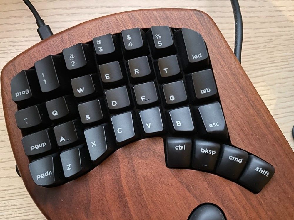 - My biggest challenges were related to the awkward positioning of "tab", "enter" and "esc" keys (in the inner sections of both parts) - which really required getting used to. Two other things you may find counter-intuitive are the order of the control keys in a bottom row (I still do peek there more frequently than I'd like to) and the fact that arrows keys are: in the 2nd mode (so they require using "fun") and positioned Vim-style (in a single row).