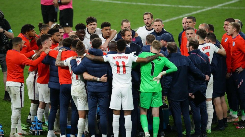 As you probably remember, Southgate has appointed 3 young and relatively inexperienced takers (Rashford, Sancho, Saka) - which didn't end well for the Sons of Albion. Unsurprisingly, those young players (especially Saka) were absolutely devastated - however, even before the cameramen have switched to the near plan to transmit their grief, their colleagues (Phillips and Shaw first, others have followed) were already with them, cheering them up and not letting them be alone with the loss and sadness.