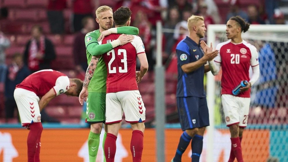 After it was clear that Eriksen has escaped the claws of death and the game between the Danes and Finns will be continued after a break, the cameraman has recorded Kasper Schmeichel approaching individually every teammate. The goalkeeper was asking how they feel, empathizing, trying to cheer them up, mobilizing (which was a challenge, keeping in mind what has just happened ...), clapping on their shoulders.