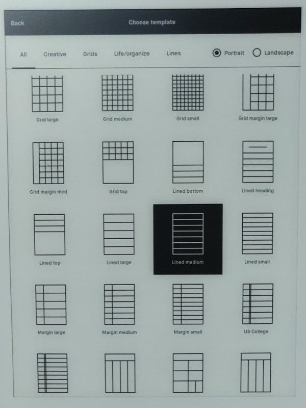 - One can also use one of many available templates (stencils) for the full pages (only): tables, grids, checklists, organizers, even perspective "helpers" or guitar chord sheets.
