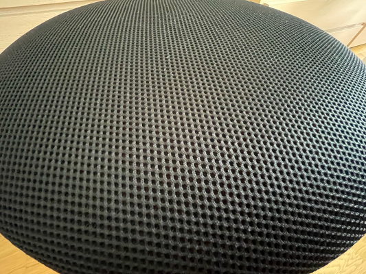 - So far, I have no complaints regarding the mesh (material that covers the cushion). I didn't spill anything on it (so I didn't have to take it off and clear). The truth is that the ... butt moves a lot (far more than in the case of a more typical seat), so I was afraid that the material might quickly wear off (rub off), but I have no visible signs of such a thing so far.