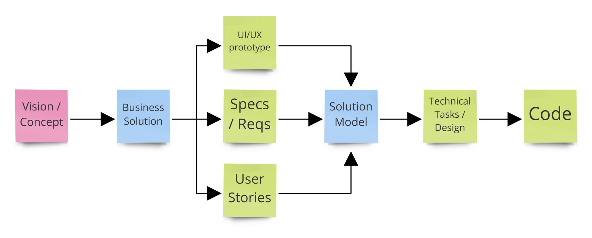 The rest of the flow is obvious & "boring". It's the Solution Model (not Business Model) that gets turned into technical workitems & implemented. Freaking Chinese whispers, don't you think?