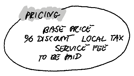 Examples? Here we go (again, from the pricing capability): base price, total price before discounts, price to be paid, quota discount, percentage discount, etc. Each of these concepts should have a clear (documented) definition. The definition can be based on/referencing other concepts - but in an unequivocal way (no flowery synonyms, please!).
